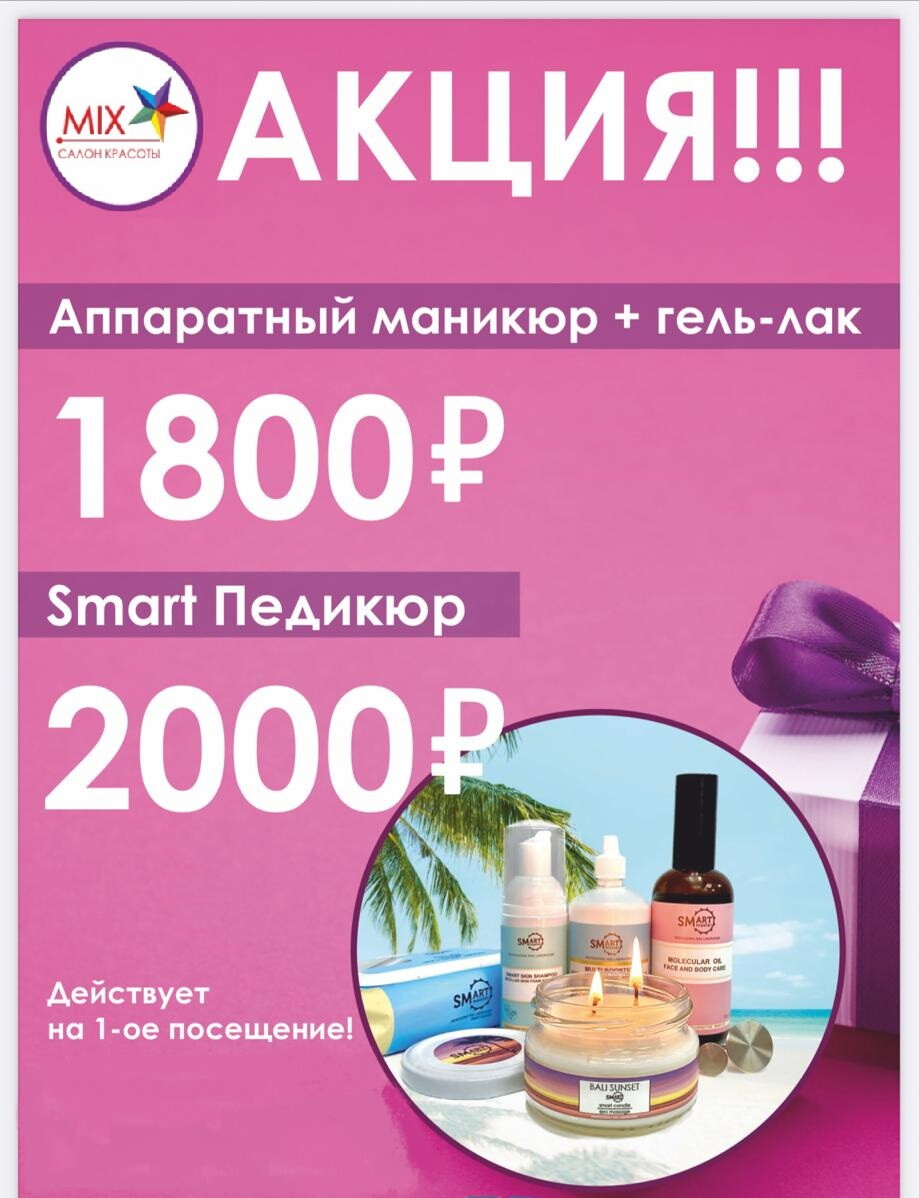 Выгодно Маникюр + гель-лак 1500 р smart педикюр 1800 р